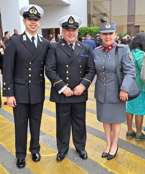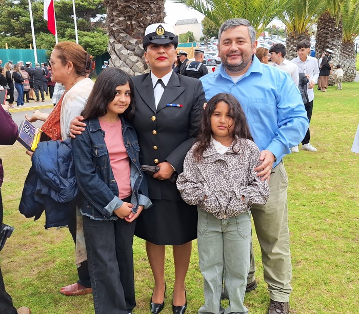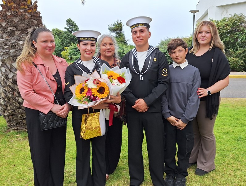 Asimismo, dedicó un especial reconocimiento a las familias, señalando que su permanente apoyo, cuidado y contención constituyen un pilar fundamental para que puedan avanzar con éxito en el camino profesional que la Armada les ha trazado, subrayando el rol clave que cumplen en cada etapa de la carrera naval “…no puede quedar fuera el permanente apoyo de las familias, quienes han estado siempre presentes en este proceso de crecimiento… esa desinteresada compañía ha permitido contar con el aliento para continuar venciendo todas las barreras que el estricto rigor en el cumplimiento de nuestro deber ha demandado…entonces es momento propicio de agradecer a aquella madre, padre, marido, señora, pareja e hijos que han sido testigos del sacrificio que a diario se realiza para cumplir cabalmente con todas sus obligaciones, las que les han permitido obtener las calificaciones necesarias para ascender al grado superior y estar formados junto a nosotros el día de hoy”.